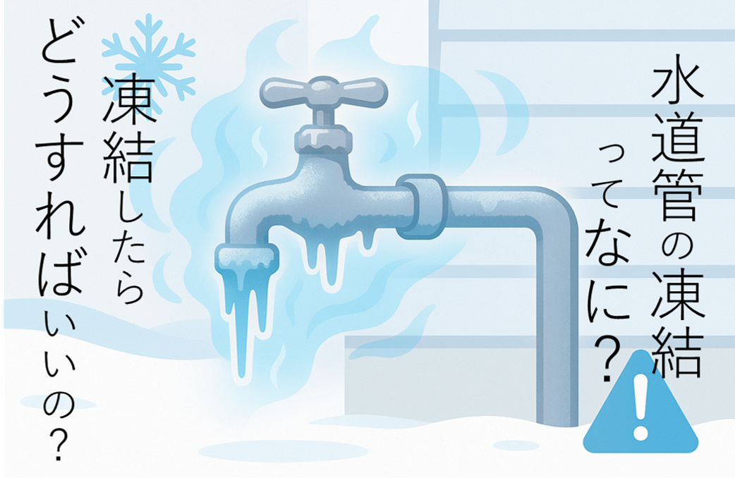 「水道管の中の水が凍ってふくらみ、通水が止まったり、解けるときに破裂・漏水するトラブルのこと」です。