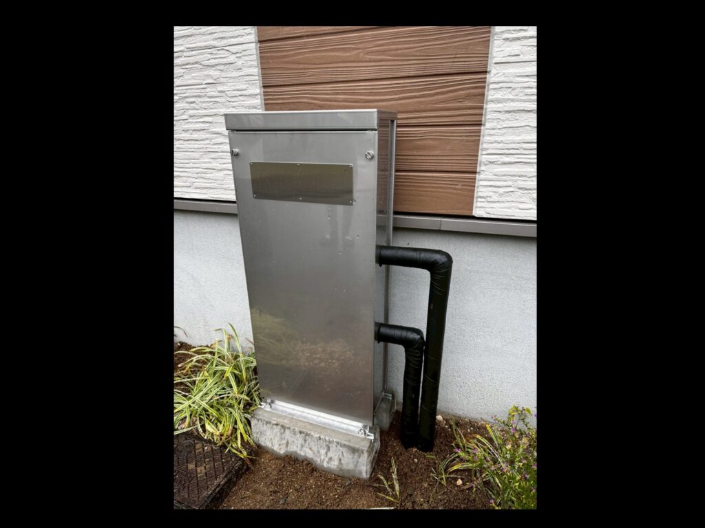 今回はカバー付きでの設置です。戸建て住宅の場合、外観やいたずら防止等のためカバー付きを選ぶ方が多いです。(カバーはなくても性能に変わりはありません)