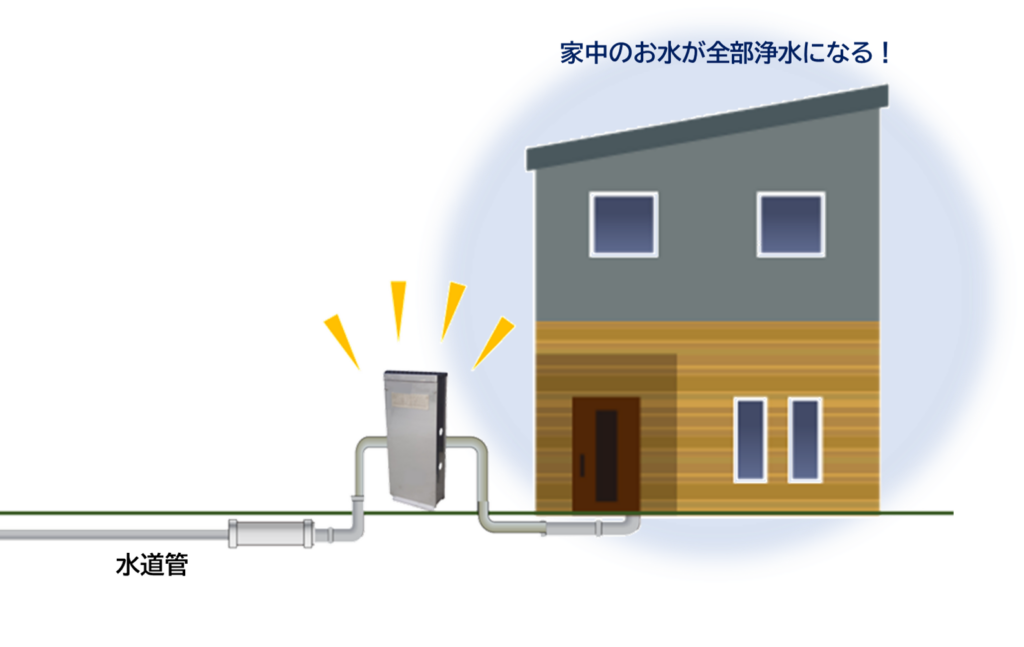 セントラル浄水器は水道配管上に設置するタイプの浄水器です。1台で家中のお水が全部浄水になるためわざわざお水を買う必要も、重いお水のタンクを運ぶ必要もありません!