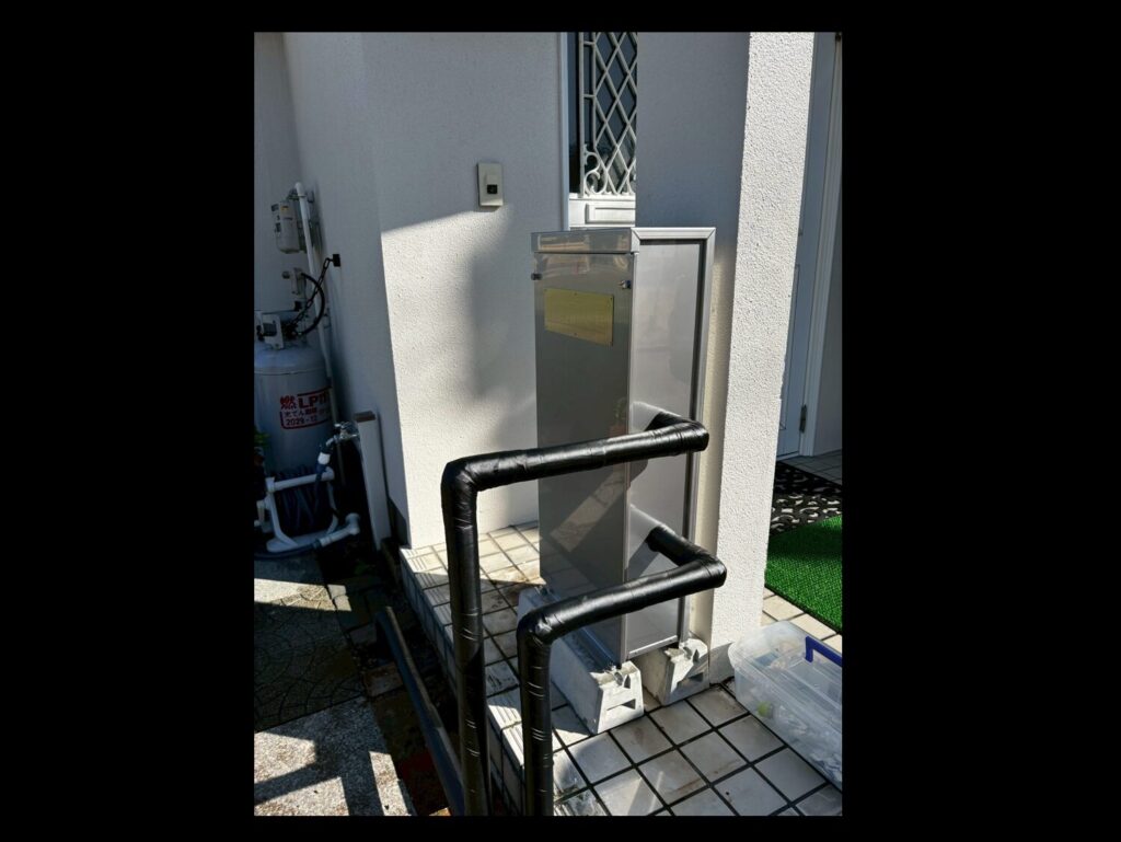 玄関横の柱部分に沿うように設置できました。