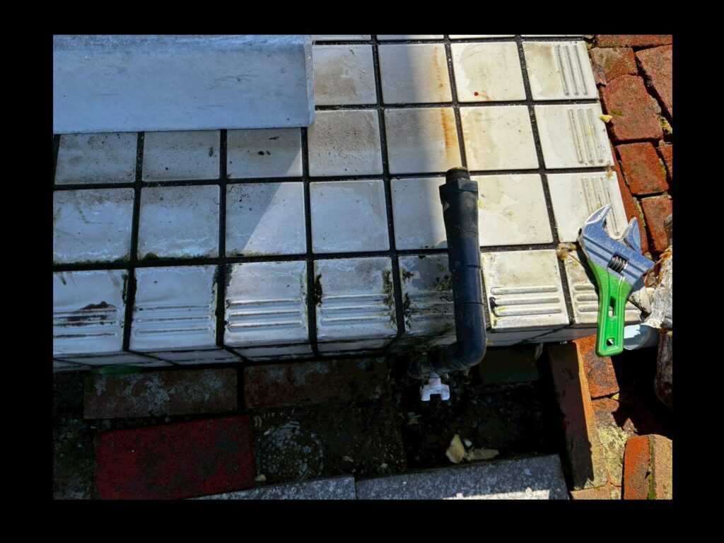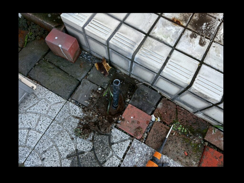 レンガ部分を取り除き埋まっている水道管をReFINE設置場所まで延ばしていきます。