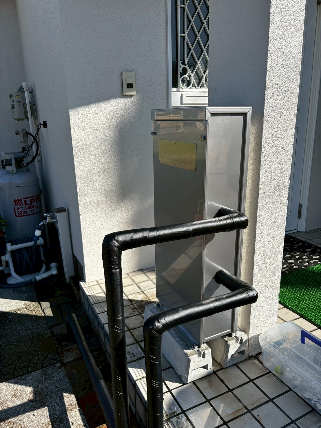 玄関横の柱部分に沿うように設置できました。